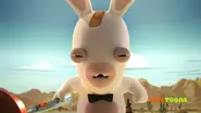 After making a rocket fit enough to go to the moon, the rabbids quickly blast off to reach their goal. However, one rabbid, who was eager to go, was left behind. So, angered and hurt, he turns evil and upon the others failed attempt to go to the moon. He posts a message where he reveals he built a real working rocket and is ready to destroy the moon. However, one rabbid, trained under Dr. Mad Rabbid, sets off to stop him James Bond style. Soon they get into a big fight, with the rabbid agent managing to overpower the supervillain. He manages to change the target, unfortunately the new target is the band aid he has on his forehead. Luckily he puts the band aid on the supervillain rabbid and escapes the explosion. With the moon now safe, he goes back to the junkyard, while the supervillain remains injured and dazed.