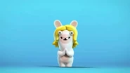 The female rabbid watches them stuck under the furniture and is happy that she can finally sing but the episode ends before she says one single word.